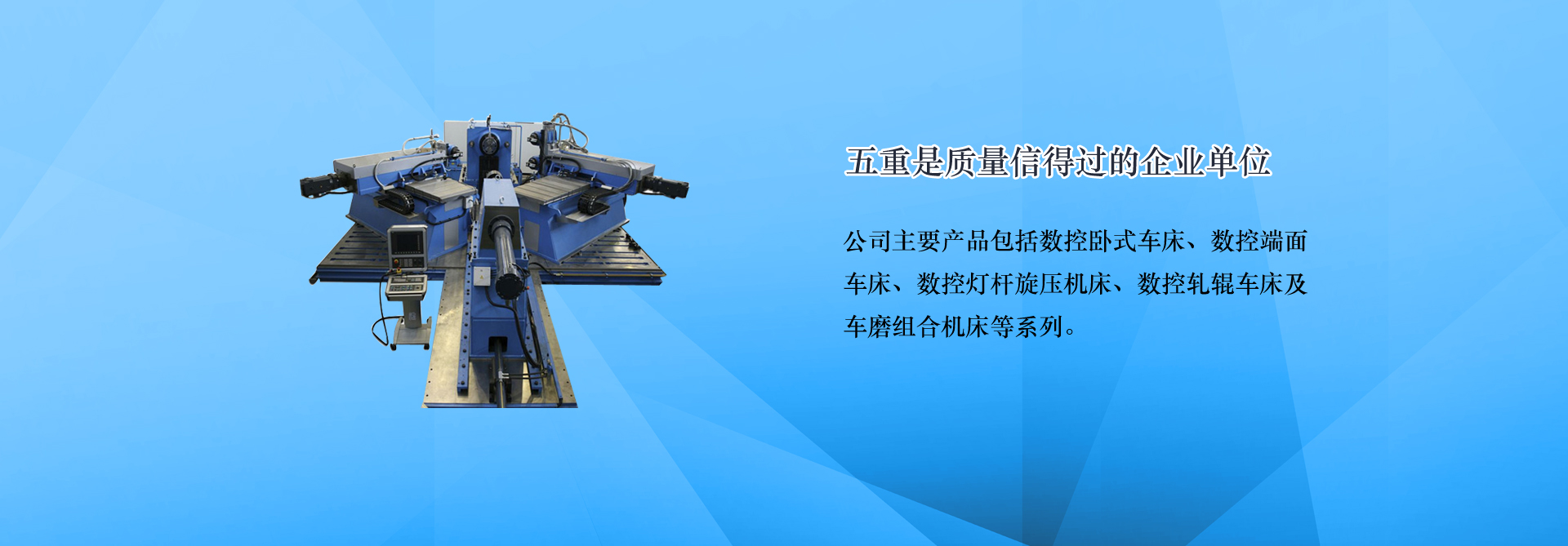 青島五重?cái)?shù)控機(jī)床有限公司(原青島第五重型機(jī)械廠)是一家集科研,生產(chǎn),銷售為一體的數(shù)控機(jī)床生產(chǎn)企業(yè),主要產(chǎn)品:端面車床,數(shù)控端面車床,車銑復(fù)合機(jī)床,車磨組合機(jī)床,膠輥磨床,地磅遙控器,數(shù)控旋壓機(jī)。連續(xù)多年被評(píng)為青島市信用企業(yè)、質(zhì)量信得過單位。公司位于青島國際中小企業(yè)工業(yè)園,地理位置優(yōu)越,距流亭飛機(jī)場僅10公里,濟(jì)青、榮烏、青威等多條高速公路經(jīng)過,交通十分便利。... [MORE + ]
